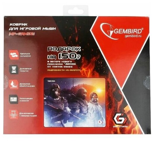 Коврик для мыши Gembird MP-GAME21, , размеры 250*200*3 мм, ткань+резина, оверлок информация: