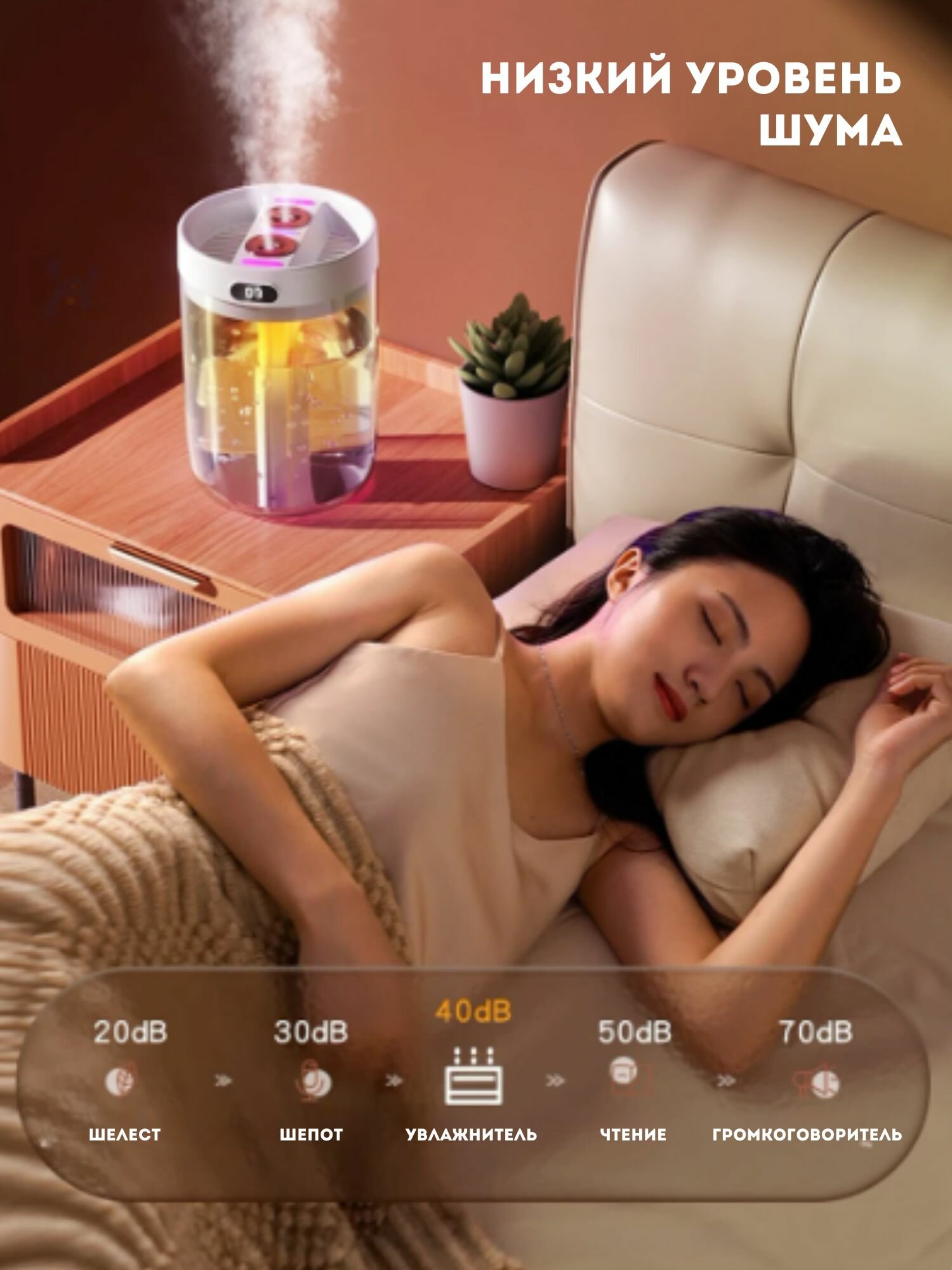 Увлажнитель воздуха и аромадиффузор с подсветкой для дома, ночник с эффектом пламяни