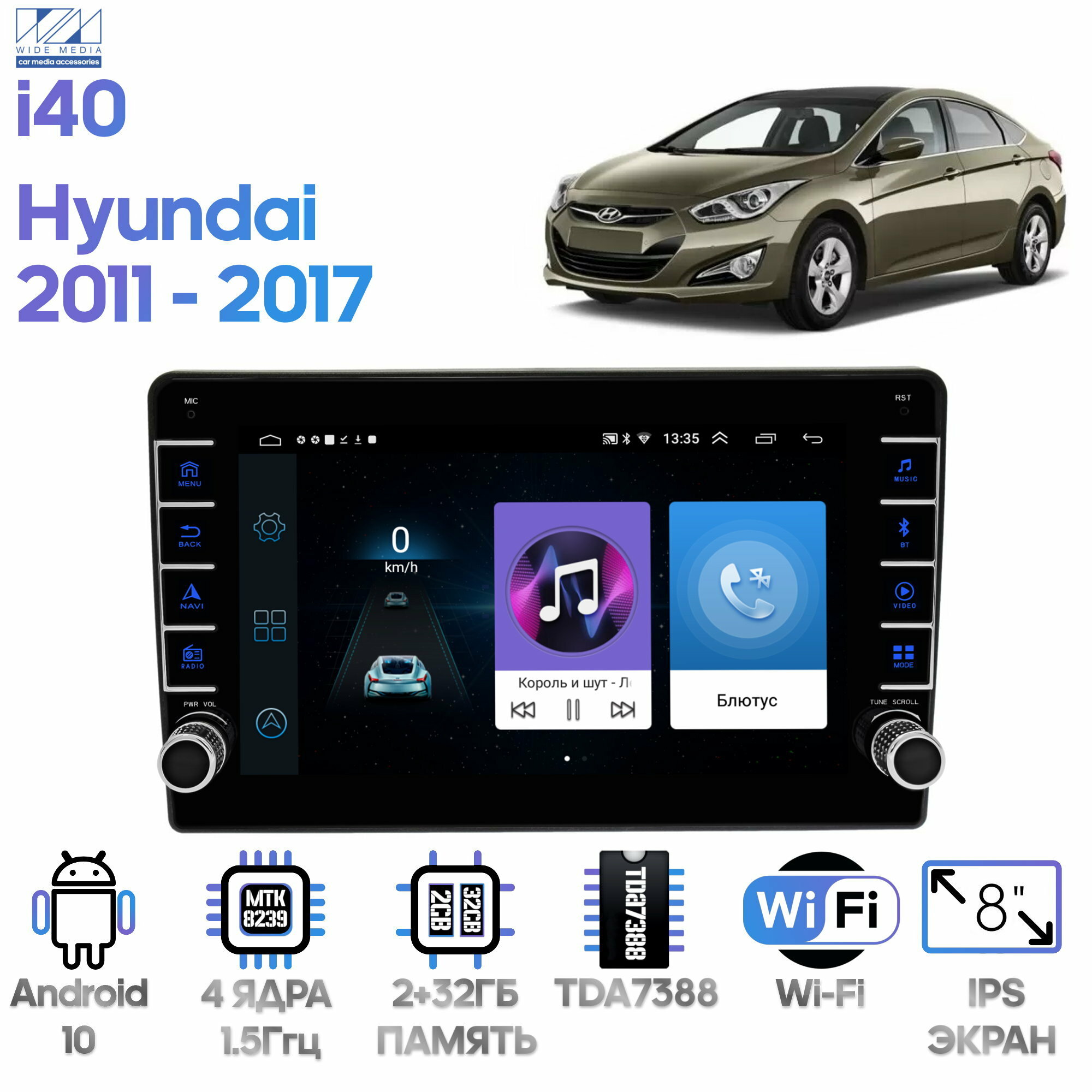 Отзывы на Штатная магнитола Wide Media Hyundai i40 2011 - 2017 [Android 8, 9 дюймов, WiFi, 2/32GB, 4 ядра]