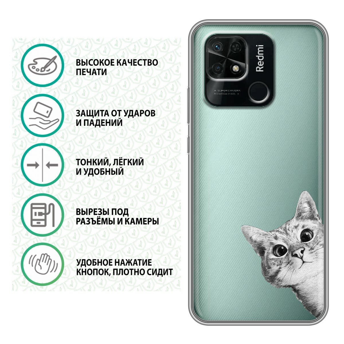 Полупрозрачный дизайнерский силиконовый чехол для Редми 10C / Xiaomi Redmi 10C Кот выглядывает информация: