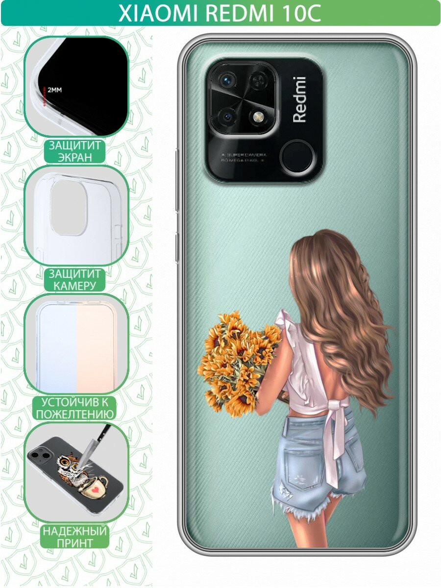 Полупрозрачный дизайнерский силиконовый чехол для Редми 10C / Xiaomi Redmi 10C Девушка с букетом информация:
