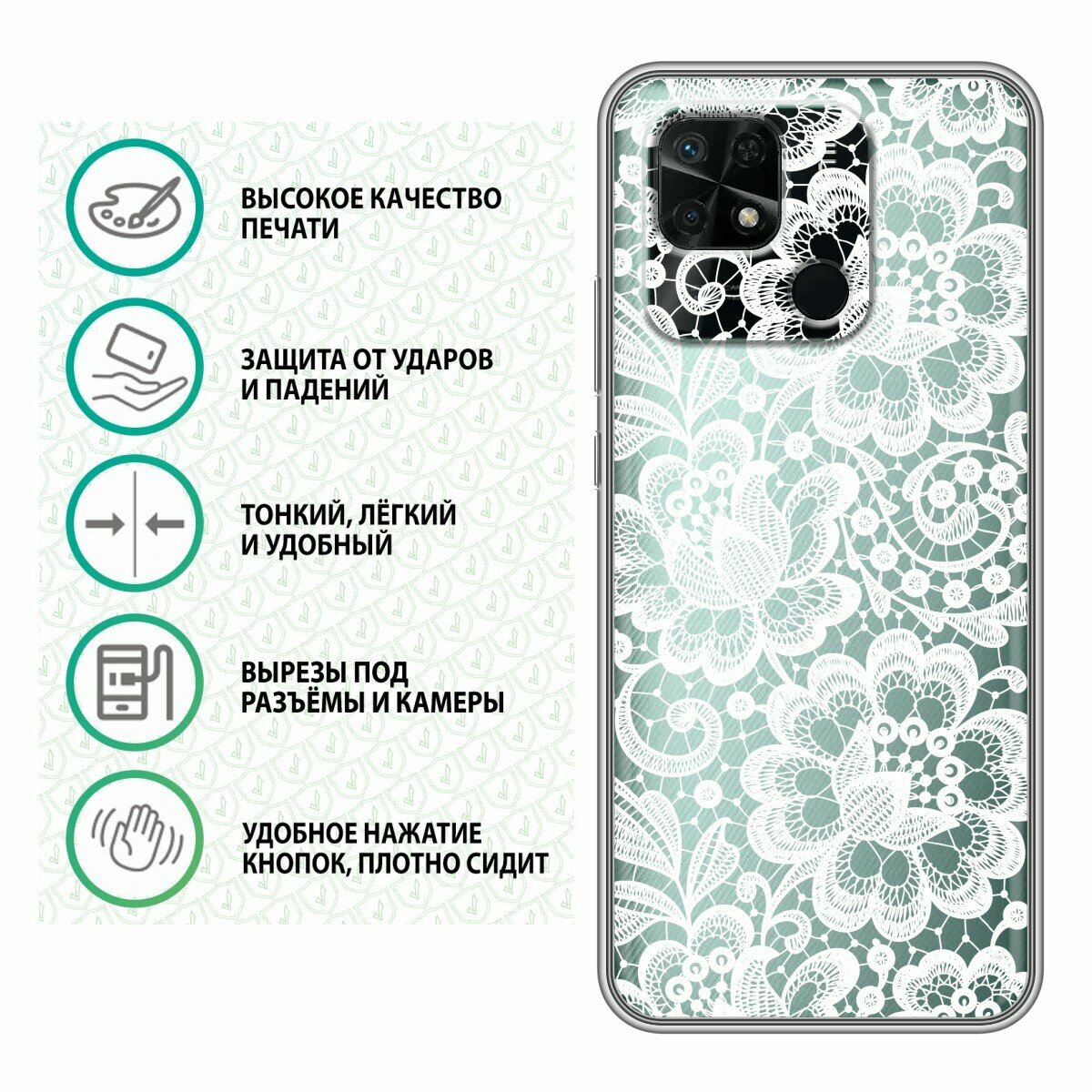 Полупрозрачный дизайнерский силиконовый чехол для Редми 10C / Xiaomi Redmi 10C Прозрачные кружева информация: