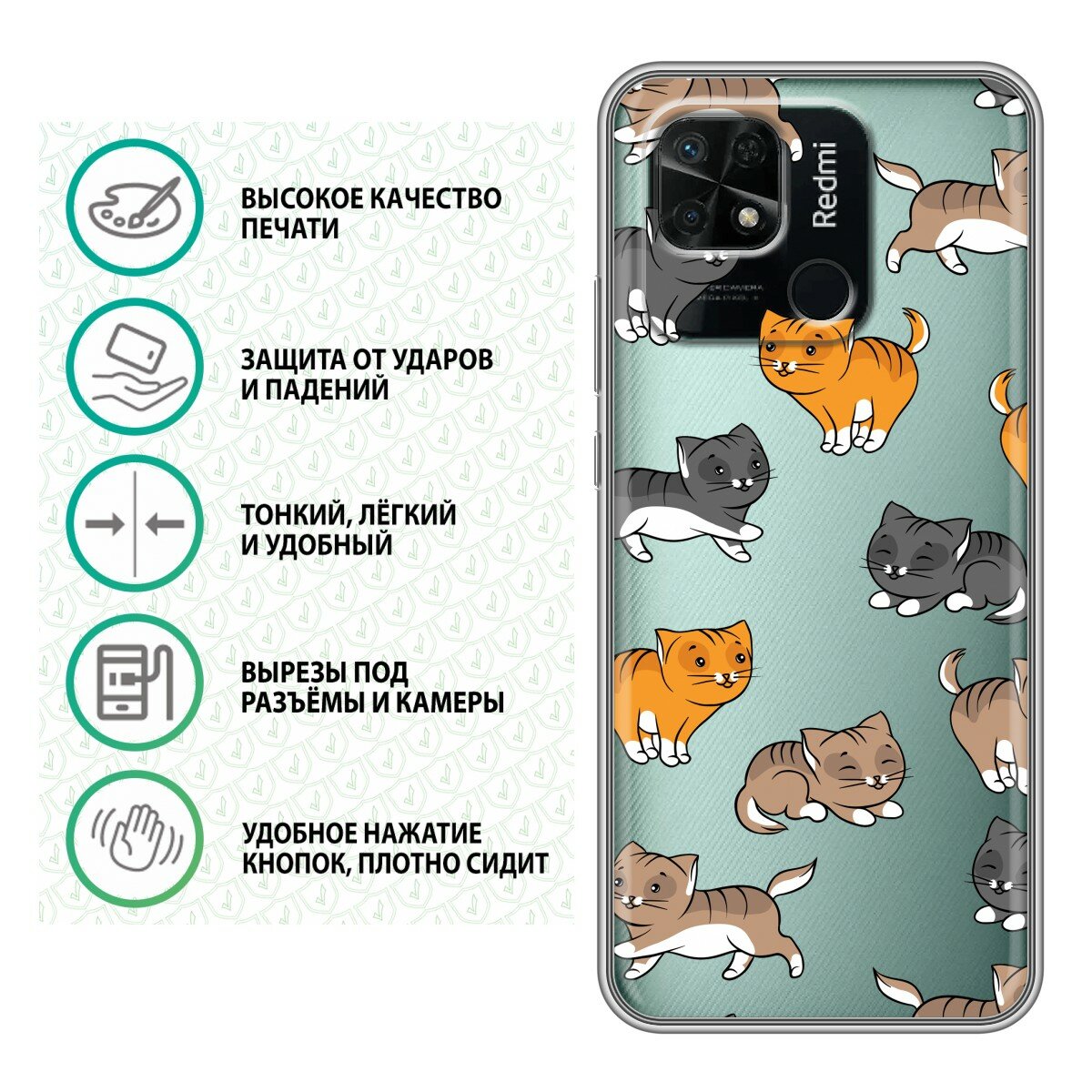 Отзывы на Полупрозрачный дизайнерский силиконовый чехол для Редми 10C / Xiaomi Redmi 10C Прозрачные котята