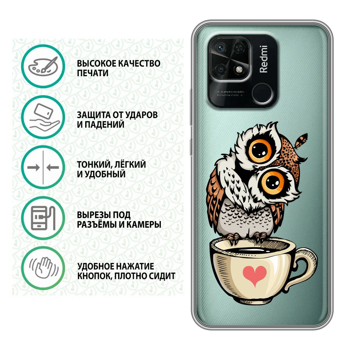 Отзывы на Полупрозрачный дизайнерский силиконовый чехол для Редми 10C / Xiaomi Redmi 10C Сова и кофе