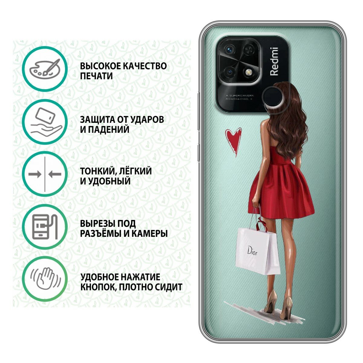 Отзывы на Полупрозрачный дизайнерский силиконовый чехол для Редми 10C / Xiaomi Redmi 10C Девушка в платье