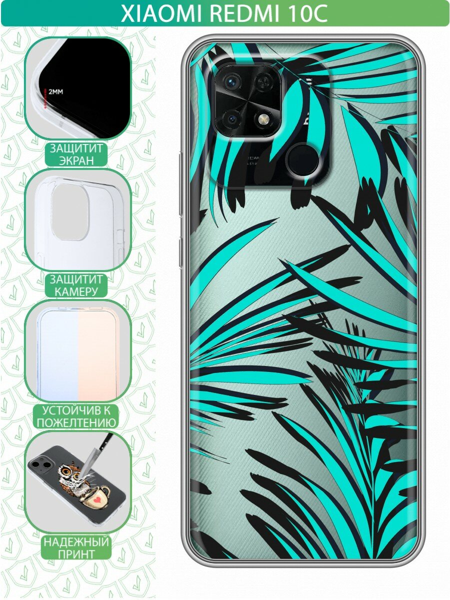 Полупрозрачный дизайнерский силиконовый чехол для Редми 10C / Xiaomi Redmi 10C Зеленые листья 579 ₽