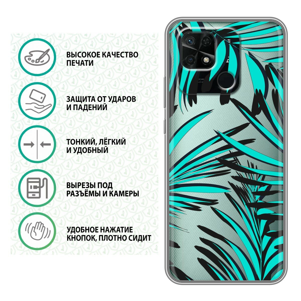 Полупрозрачный дизайнерский силиконовый чехол для Редми 10C / Xiaomi Redmi 10C Зеленые листья паттерн 579 ₽