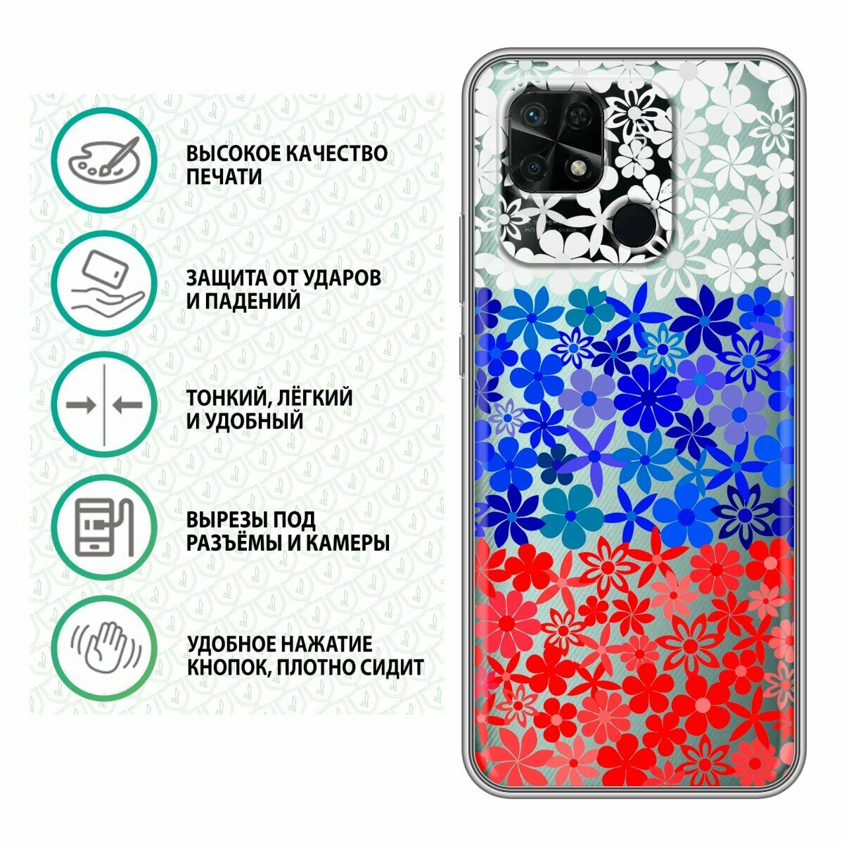 Полупрозрачный дизайнерский силиконовый чехол для Редми 10C / Xiaomi Redmi 10C Российский флаг информация: