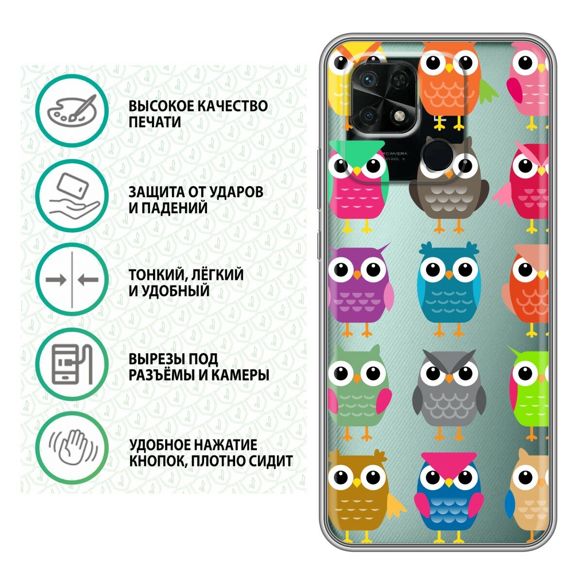 Полупрозрачный дизайнерский силиконовый чехол для Редми 10C / Xiaomi Redmi 10C Прозрачные совы информация: