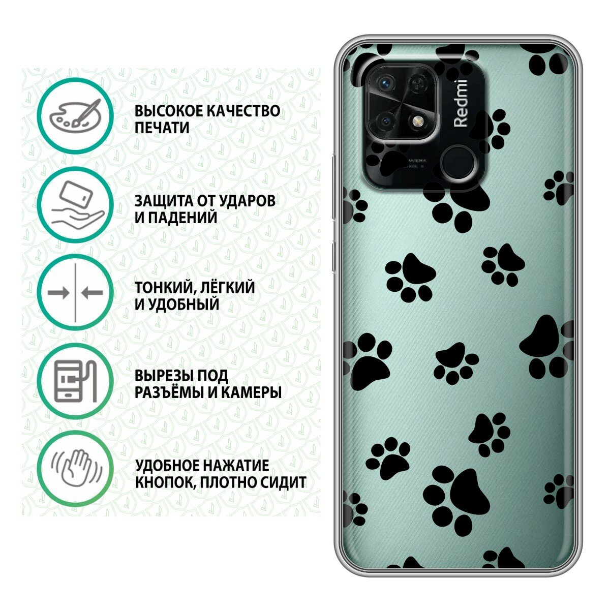Отзывы на Полупрозрачный дизайнерский силиконовый чехол для Редми 10C / Xiaomi Redmi 10C Прозрачные следы