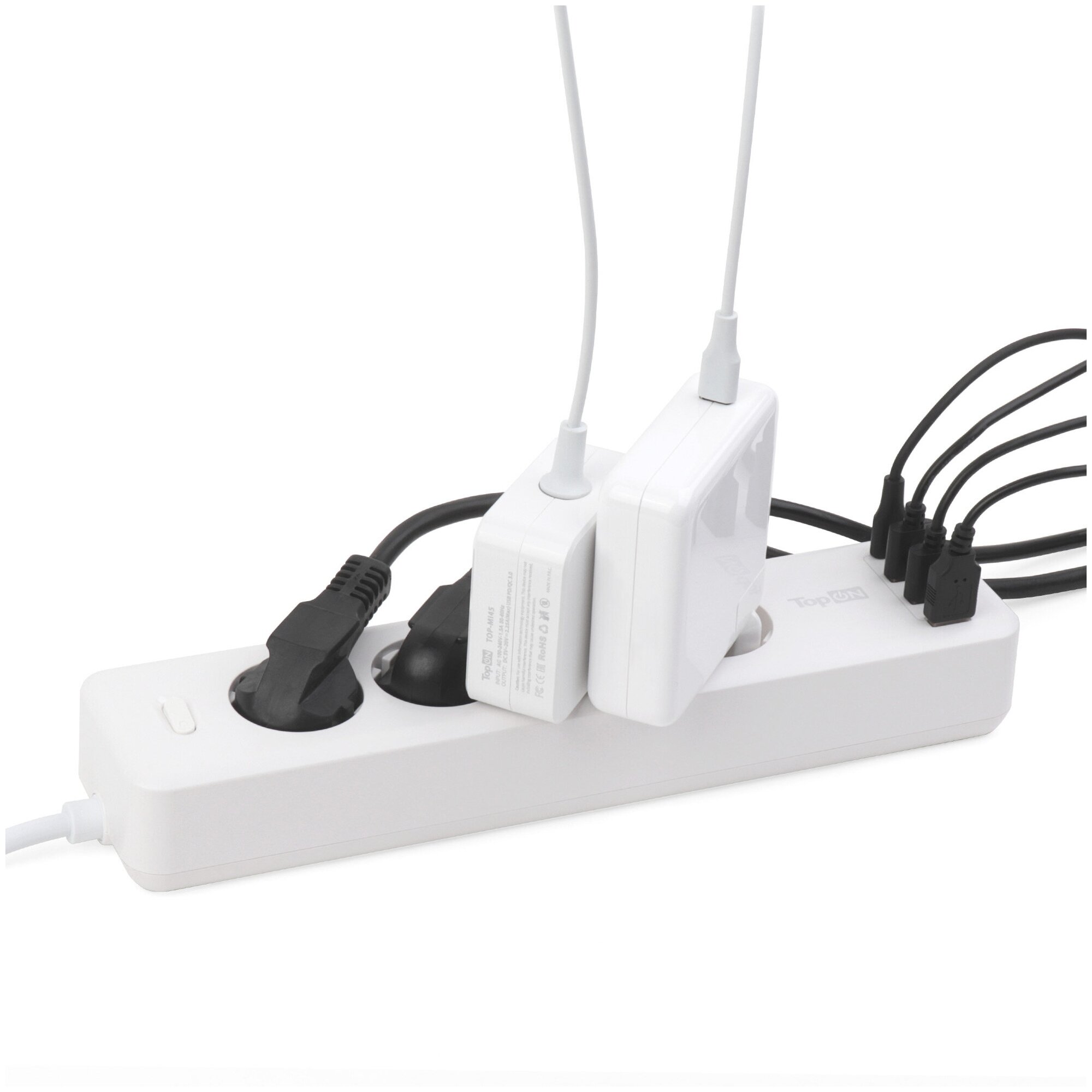 10 цен на Сетевой фильтр TopON TOP-PWS4 4 розетки, 3 USB, Type-C, PD 20W QC3.0, 4000W, 3м Белый