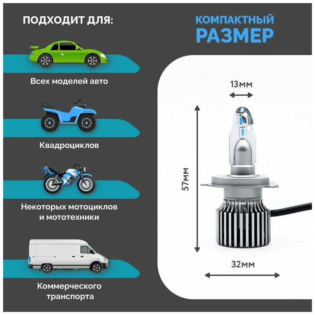 10 цен на Светодиодные автолампы цоколь H4 напряжение 12V мощность 25W чип CSP 3570 6000K MYX Light модель M1 Premium комплект 2 шт.