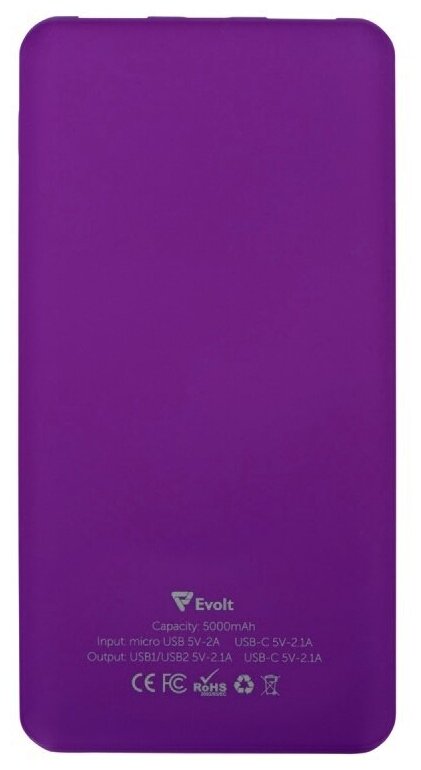 Портативное зарядное устройство Reserve с USB Type-C, 5000 mAh, фиолетовый информация: