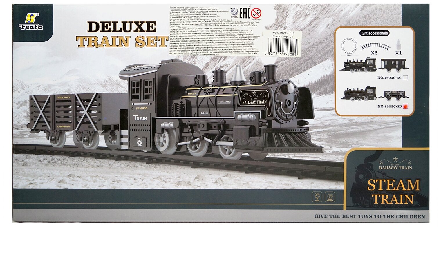 Железная дорога с паром (свет и звук) (1 паровоз + 1 вагон) 1603C-3D информация: