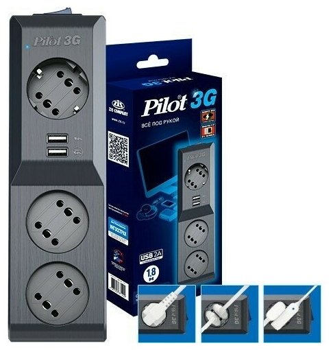 Сетевой фильтр Pilot 3G (5 м, 3 розетки), черный информация: