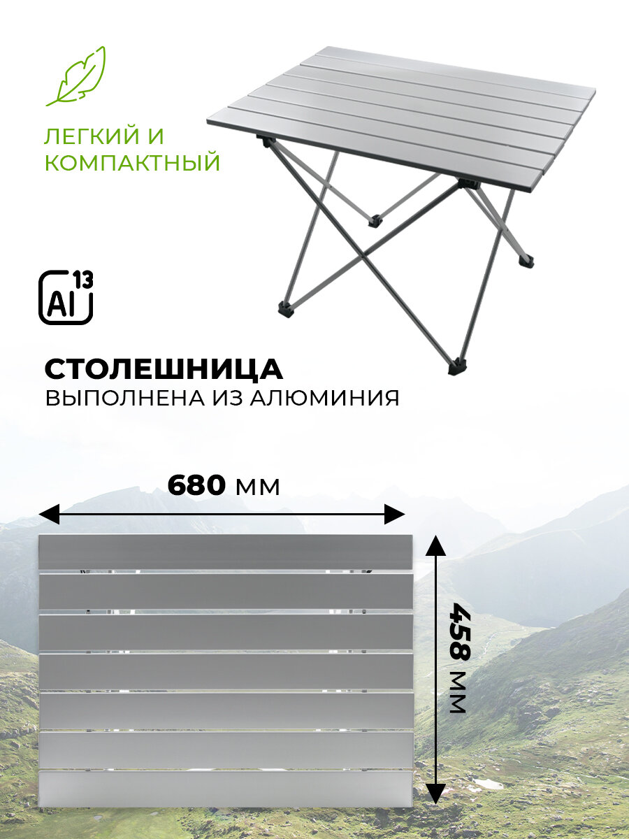 Походный складной стол АТ6744 68х45,8х40 см алюминий информация: