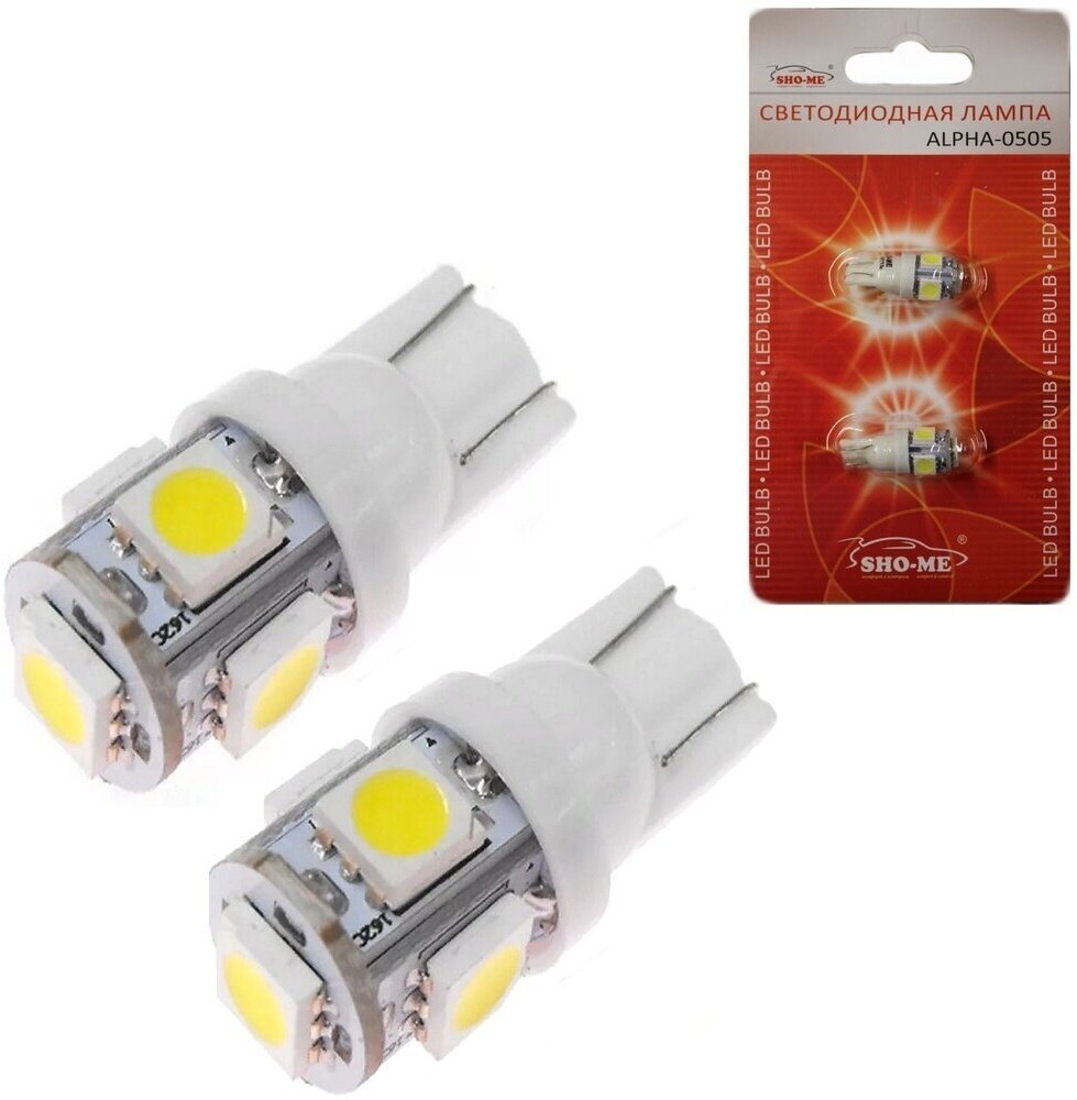 Лампа светодиодная 12V T10 1,8W 5000K SHO-ME 2 шт. картон ALPHA-25