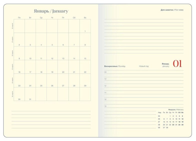 | Особенности | закругленные углы / календарь / карман для визиток / ляссе / справочная информация / Датированный |