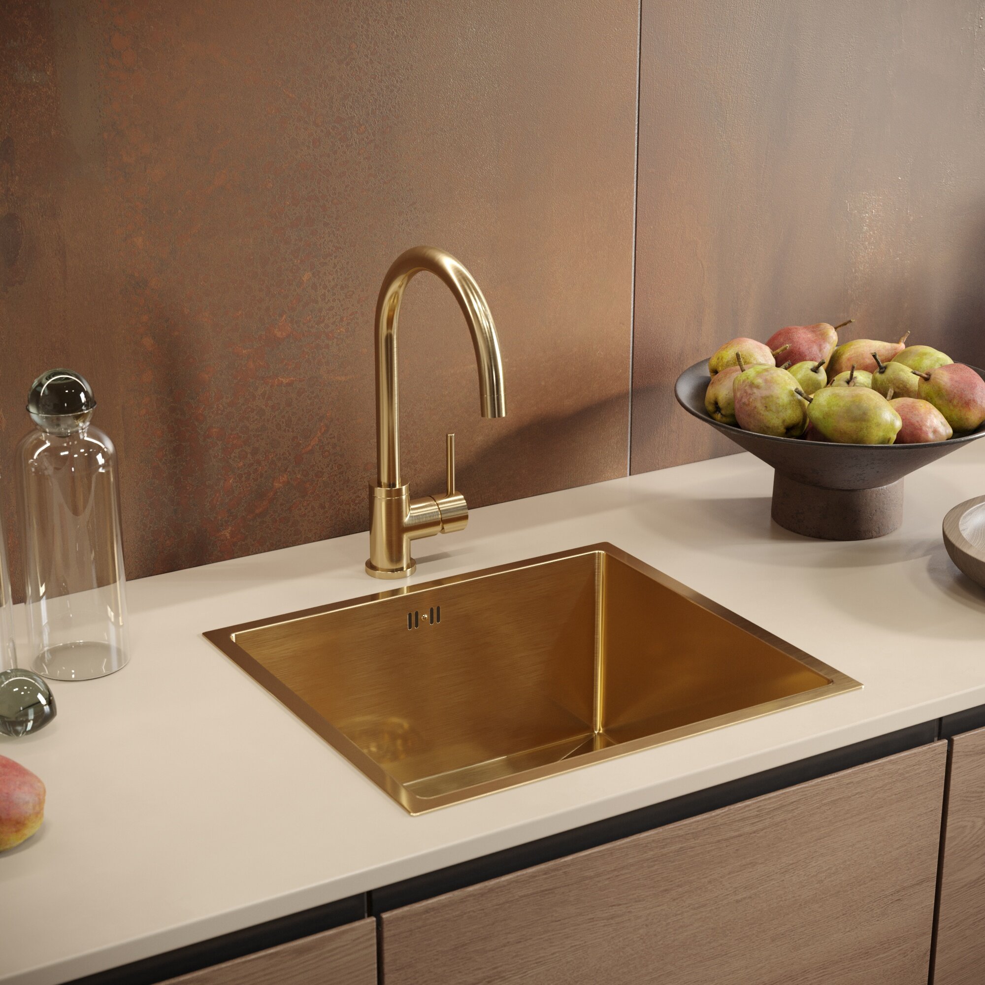 Отзывы на Мойка кухонная Domaci Равенна PVD EMB-114 золотая, 48х43 см, врезная, квадратная, нержавеющая сталь