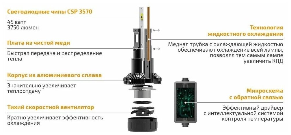 Светодиодные лампы Vizant J7 цоколь H15 с чипом CSP 3570 4500lm 5000