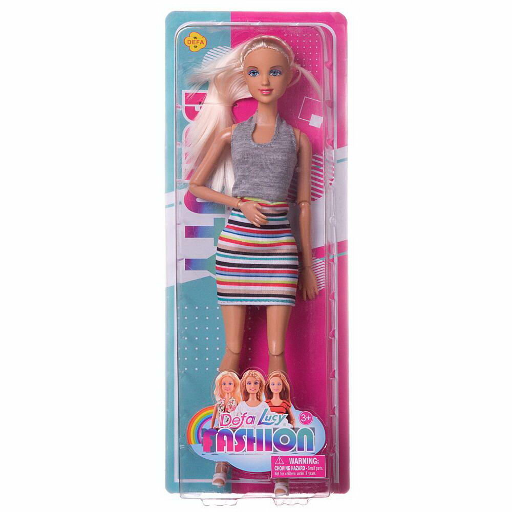 Отзывы на Кукла Defa Lucy Модная девушка, в серой кофте и радужной полосатой юбке, 28см