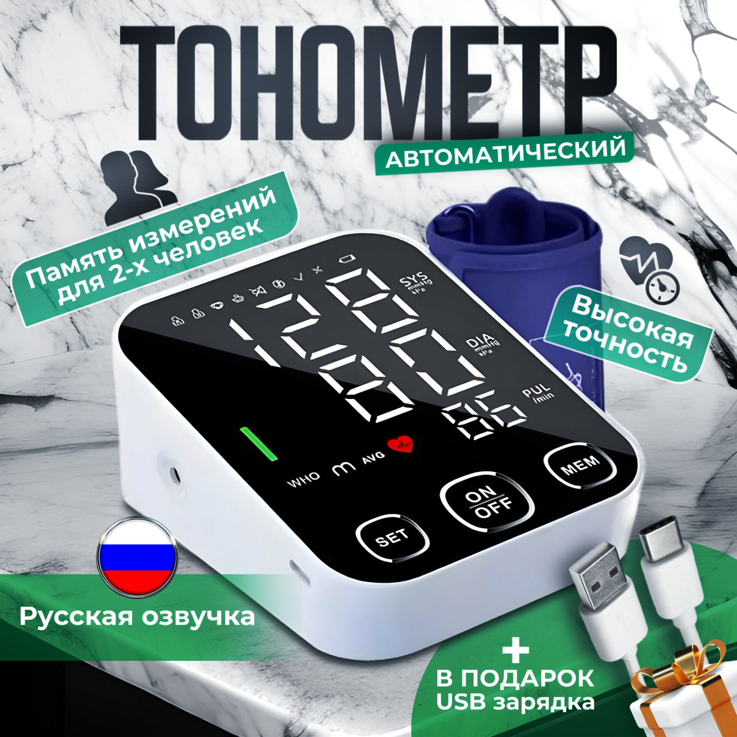 Тонометр автоматический / Тонометр для измерения давления на запястье/ Русское голосовое оповещение