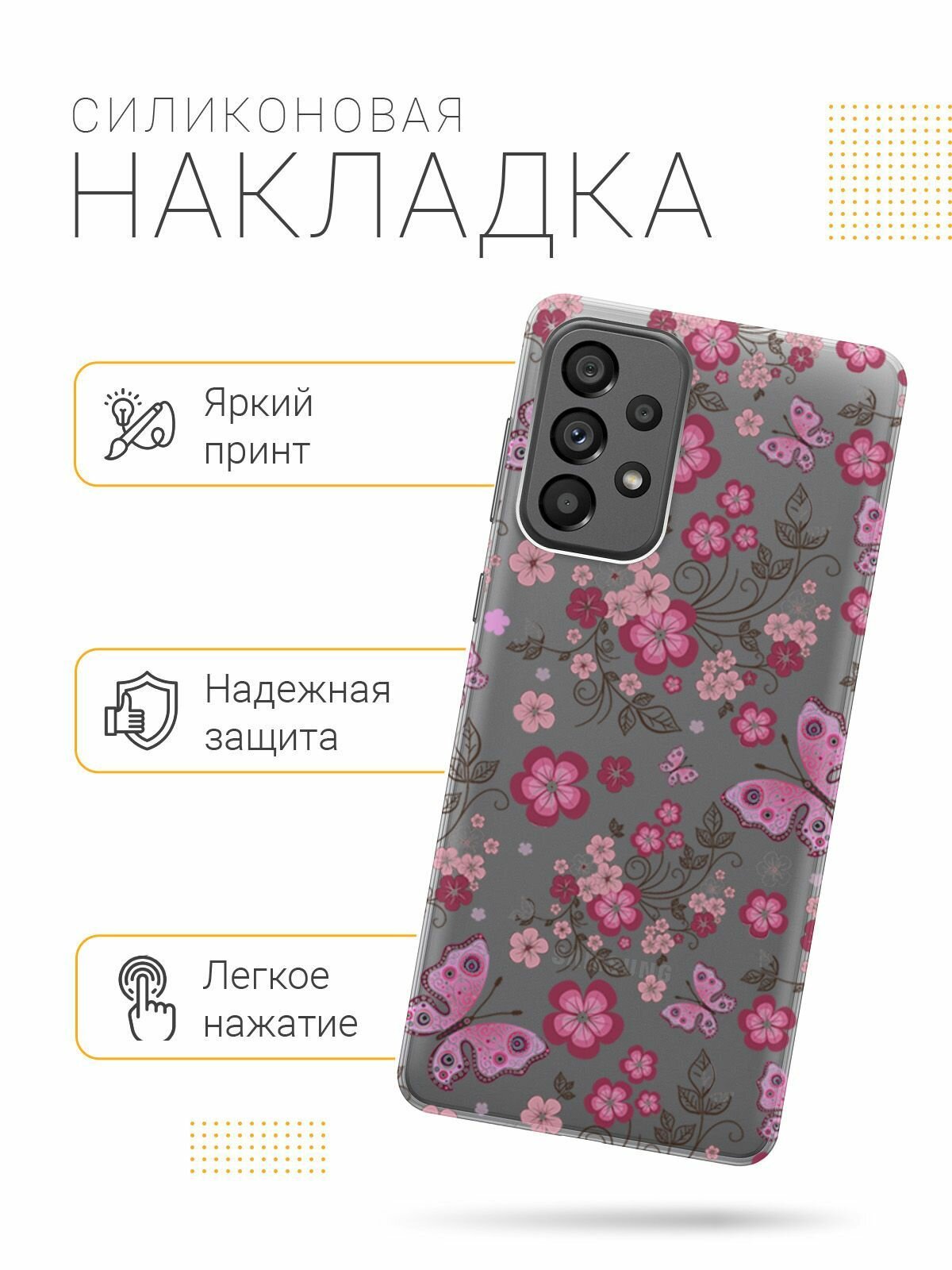10 цен на Силиконовый чехол на Samsung Galaxy A73 5G / Самсунг А73 5Г с 3D принтом "Butterflies and Flowers" прозрачный