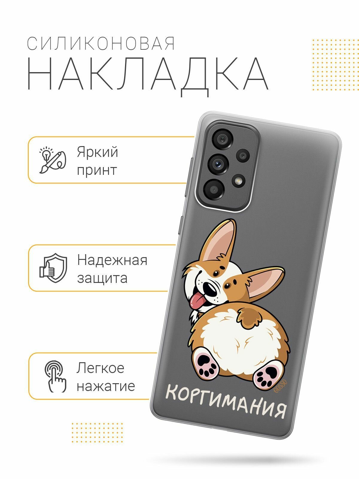 Силиконовый чехол на Samsung Galaxy A73 5G, Самсунг А73 5Г с 3D принтом "CorgiMania" прозрачный 474 ₽