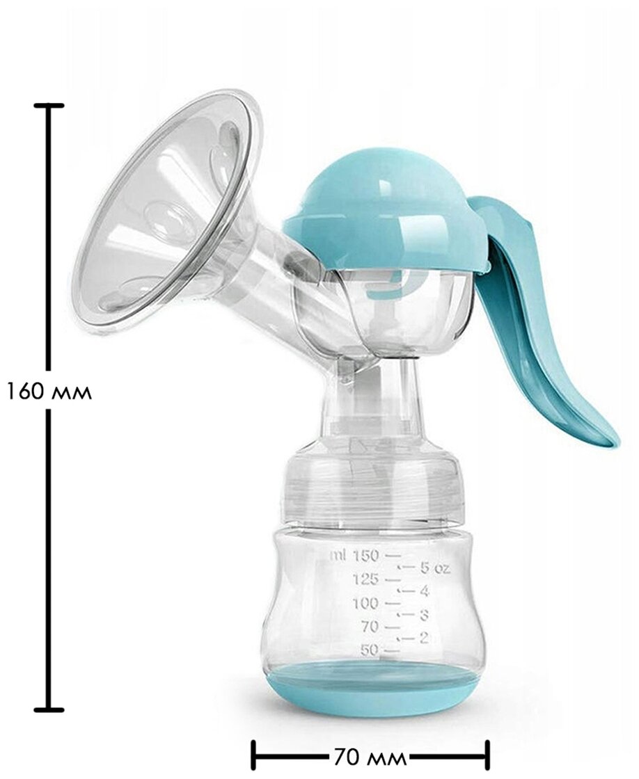 Ручной молокоотсос с бутылочкой и соской Голубой информация: