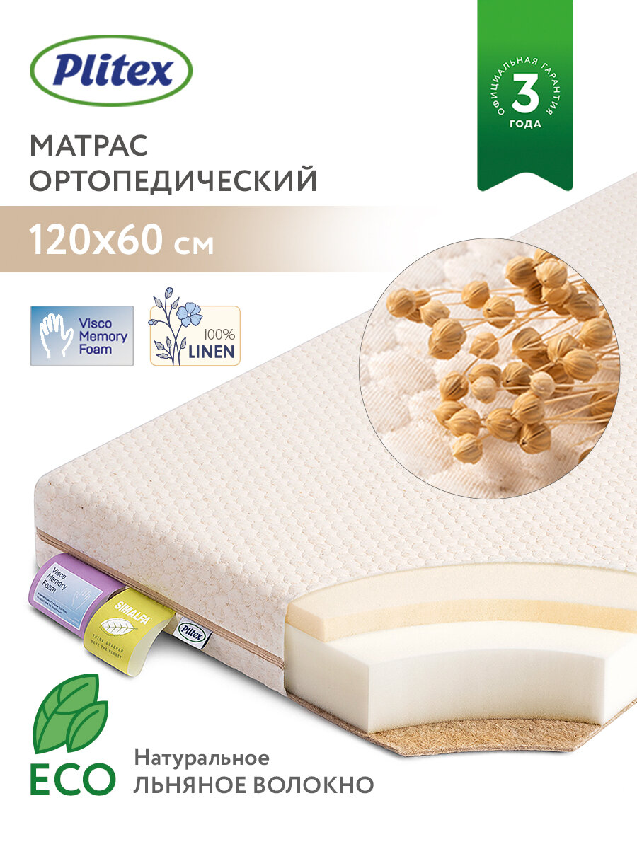 Матрас детский ортопедический Plitex Комфорт Memory, гипоаллергенный для новорожденного в кроватку 60х120 см 6 200 ₽