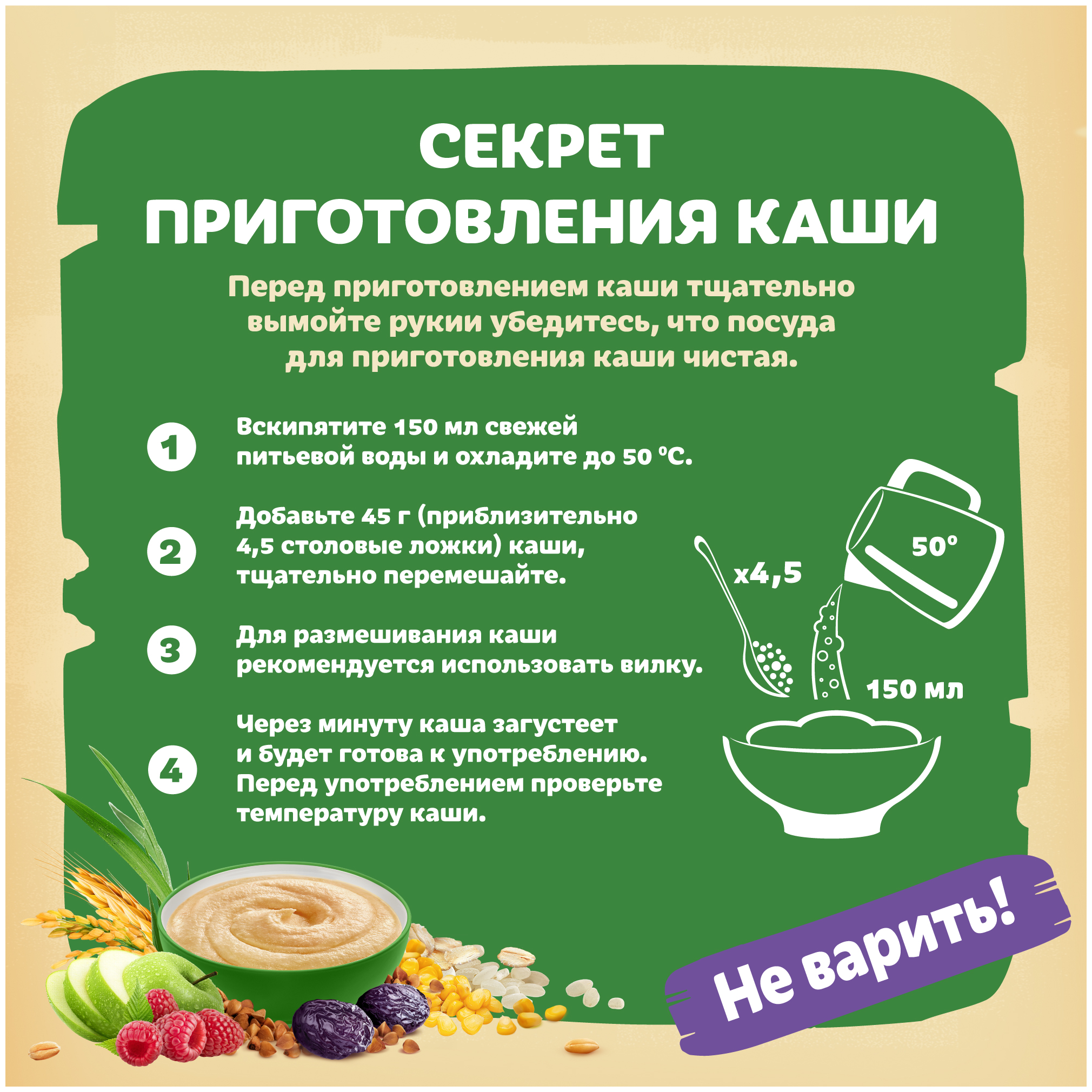 | Состав | мука гречневая, сухая молочная основа (молоко обезжиренное, смесь растительных масел (пальмовое, рапсовое, кокосовое, подсолнечное, эмульгатор соевый лецитин)), сахар, мальтодекстрин, витаминно-минеральный премикс (содержит минералы (Ca, Fe, Zn, Cu, I), витамины (С, Е, ниацин, А, D3, К, пантотеновую кислоту, В12, В1, биотин, В6, фолиевую кислоту, В2)). Может содержать следы глютена |