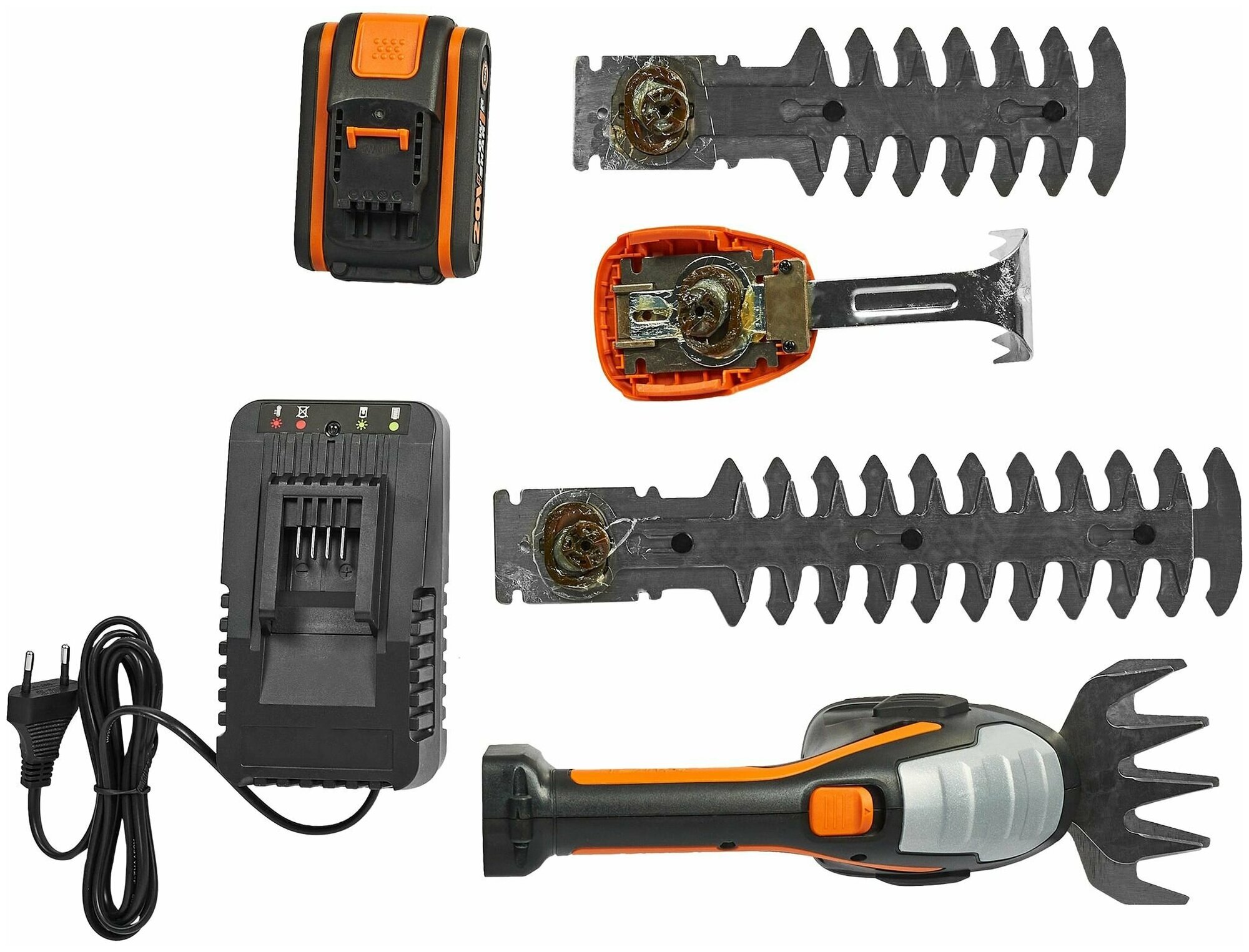 Аккумуляторный кусторез-ножницы, АКБ 2000 мАч, шаг полотна 8 мм, справится со стрижкой травы, кустарников и формированием живой изгороди. информация: