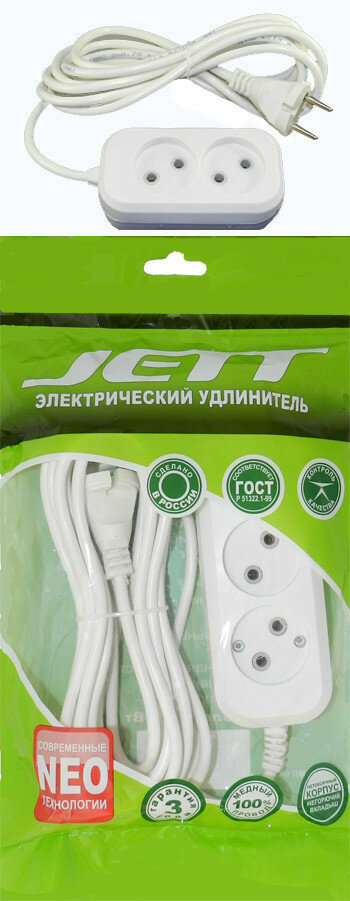 Отзывы на Джетт Удлинитель Джетт РС-2 без з/м, 2р*3м ( провод ПВС 2х0,75 ) (45шт) 155-103