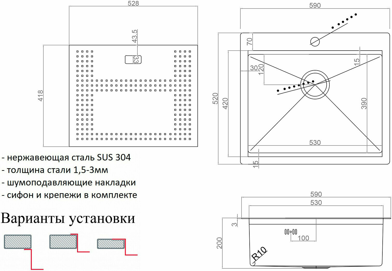| Дополнительная информация | с накладкой для сушки посуды |