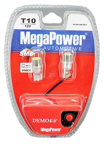 MEGAPOWER-AUTOMOTIVE 10614W-2БЛТ Лампа светодиодная 12V W5W T10 W2.1x9.5d 6000K с тестером блистер (2шт.) MEGAPOWER