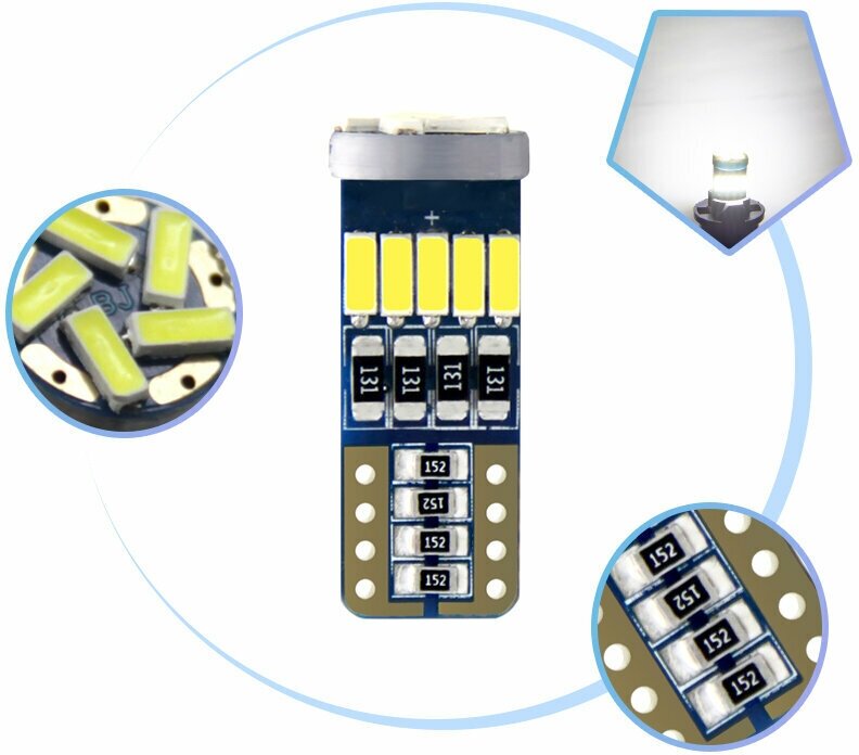 | Дополнительная информация | Две автомобильные лампы T10 - 5 - 15 SMD 4014 + Обманка |