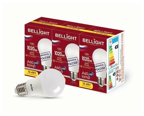 Отзывы на Лампа светодиодная низковольтная DC, А60 12W 4000K 12-48Вт, 3шт.