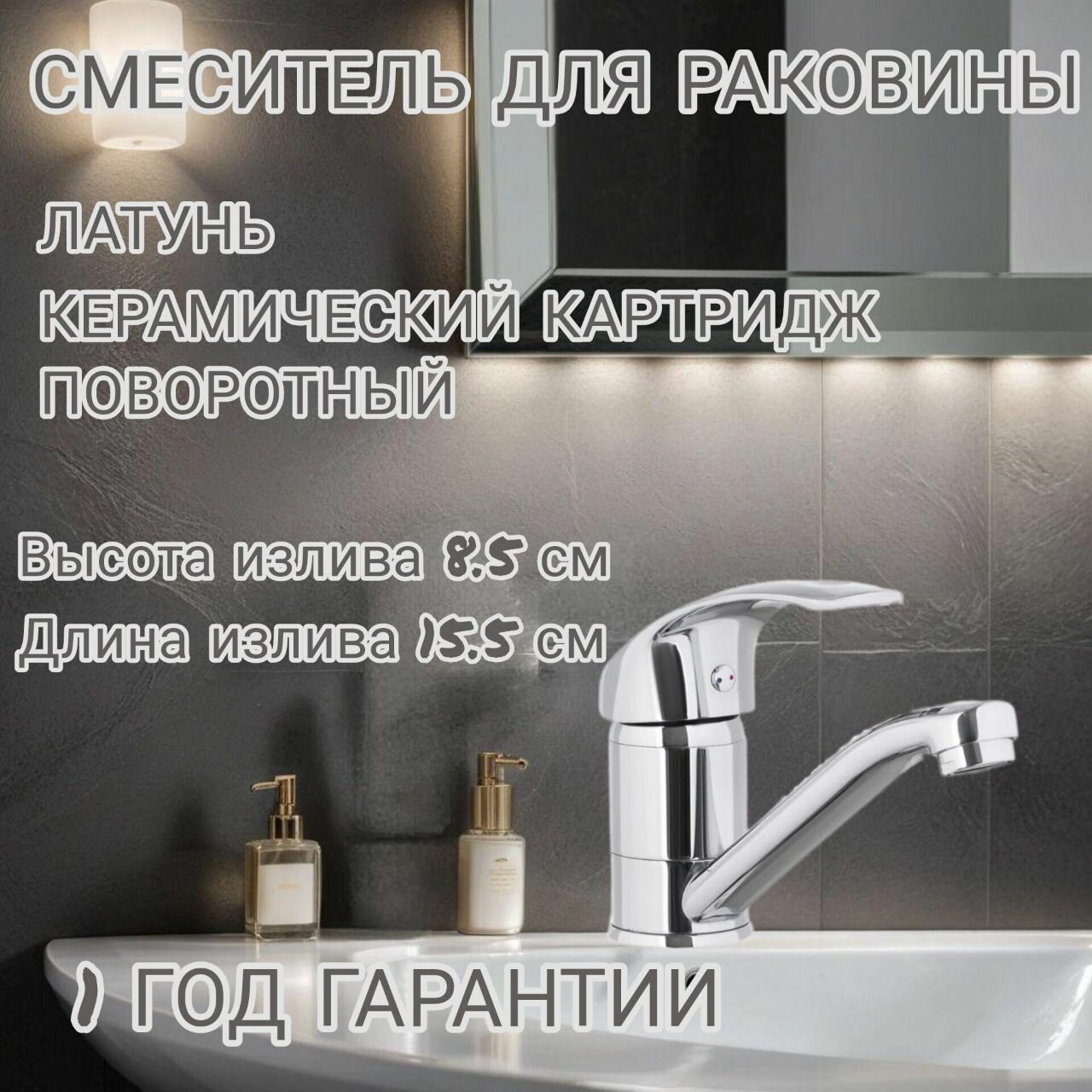 Смеситель/кран для кухни/умывальника (однорычажный с поворотным коротким (15,5 см) изливом, хромированный, латунный) SMART SM405-04CS информация: