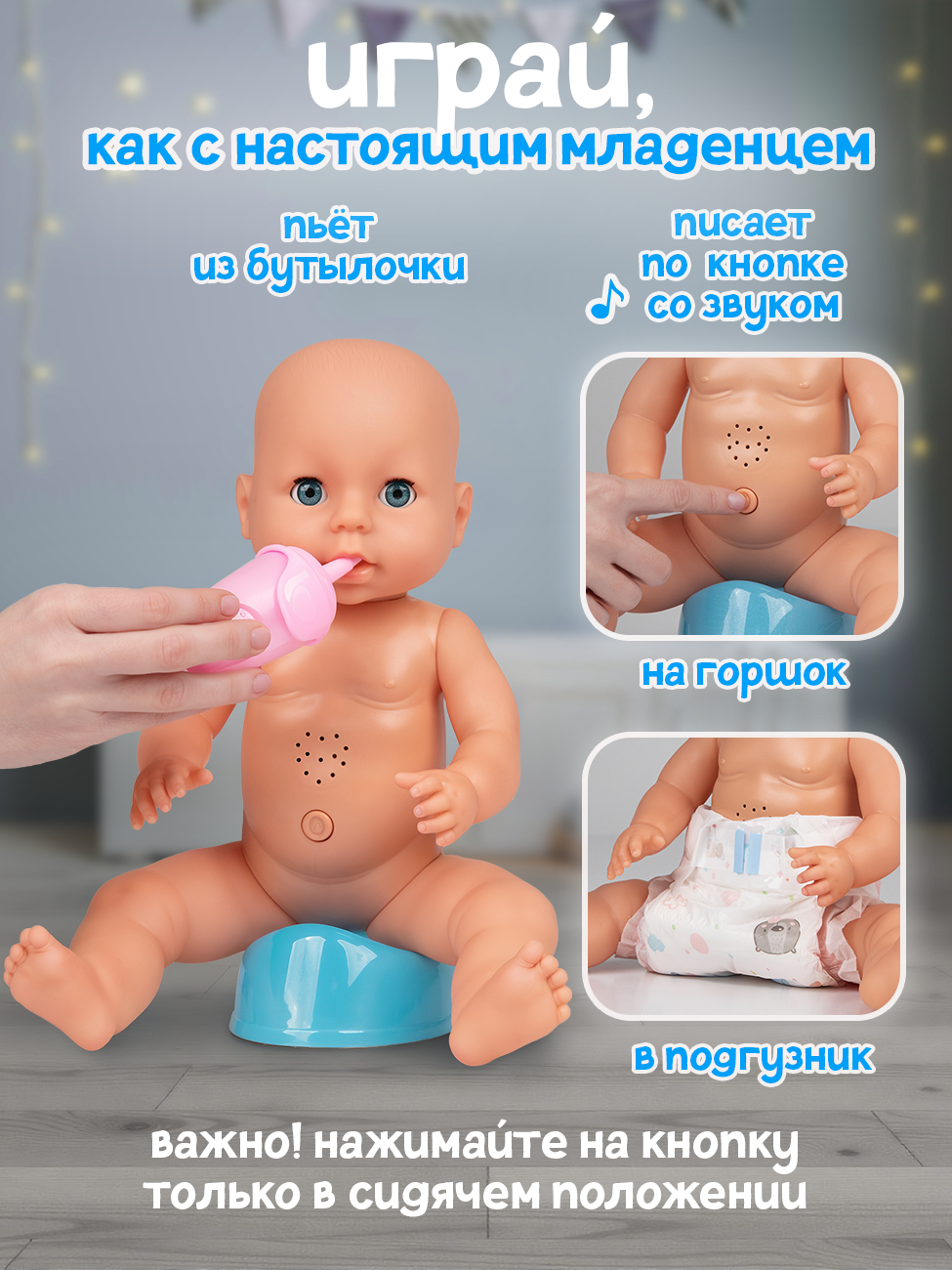 Кукла Пупс 40см, со звуком, пьет, писает, плачет, смеется, Yale Baby информация: