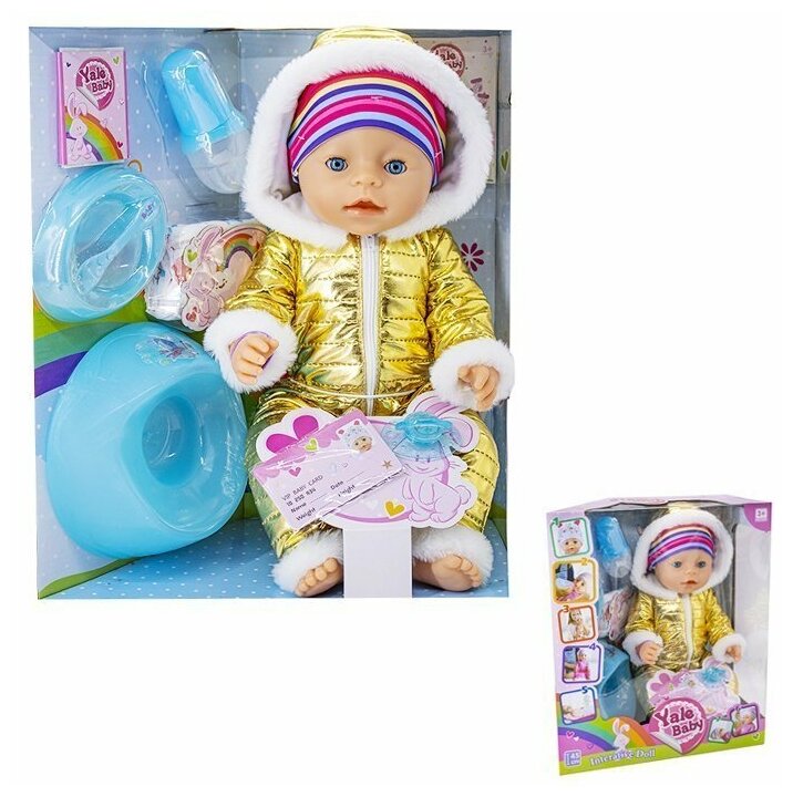 Игрушка Кукла Пупс Yale Baby с аксессуарами для девочки, рост куклы 40см, пьет и писает, YL1961K-J