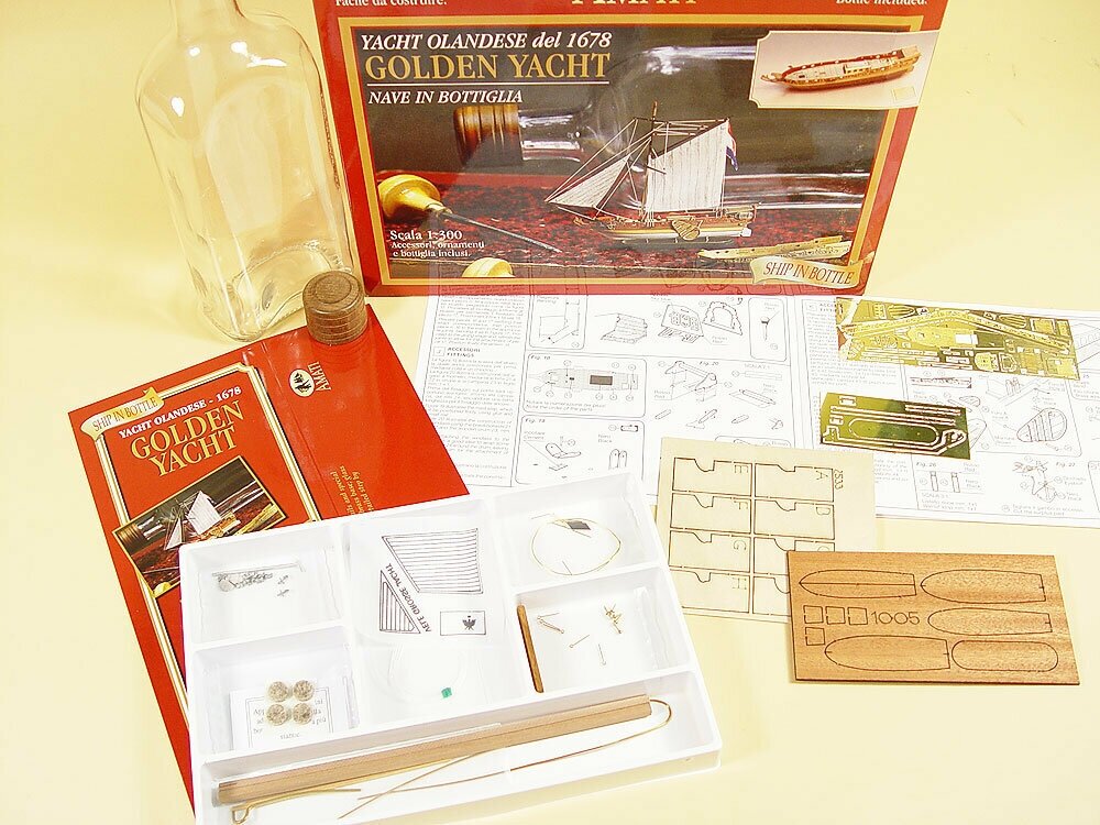 Модель парусного корабля Amati (Италия), Golden Yacht в бутылке, М.1:300, подарочный набор для сборки + краски, клей, AM1350-RUS-full информация: