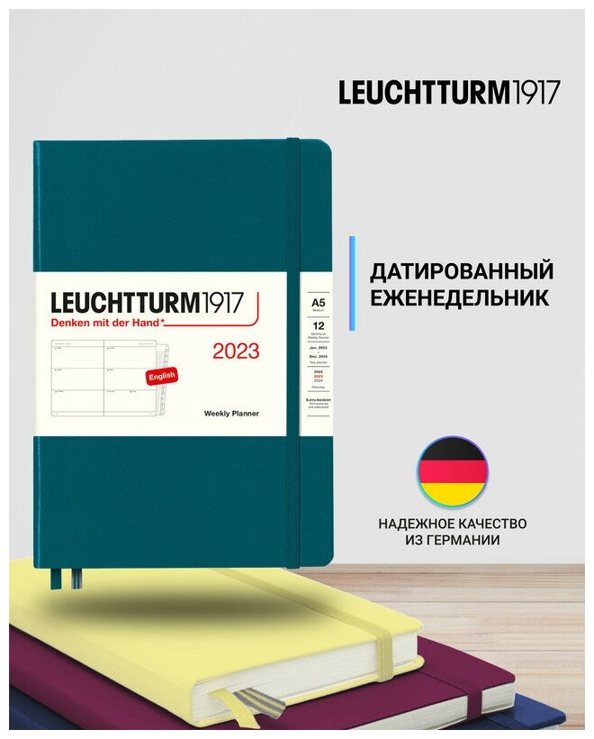 Еженедельник датированный Leuchtturm1917 Medium, 72 листа, А5, зеленый океан информация: