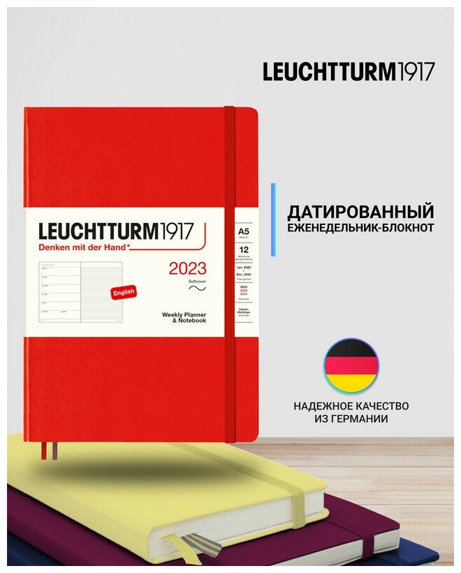 Отзывы на Еженедельник-блокнот Leuchtturm1917 Medium A5 (14.5x21см.) датированный на 2023 год, 80г/м2 - 144стр., мягкая обложка, цвет: красный