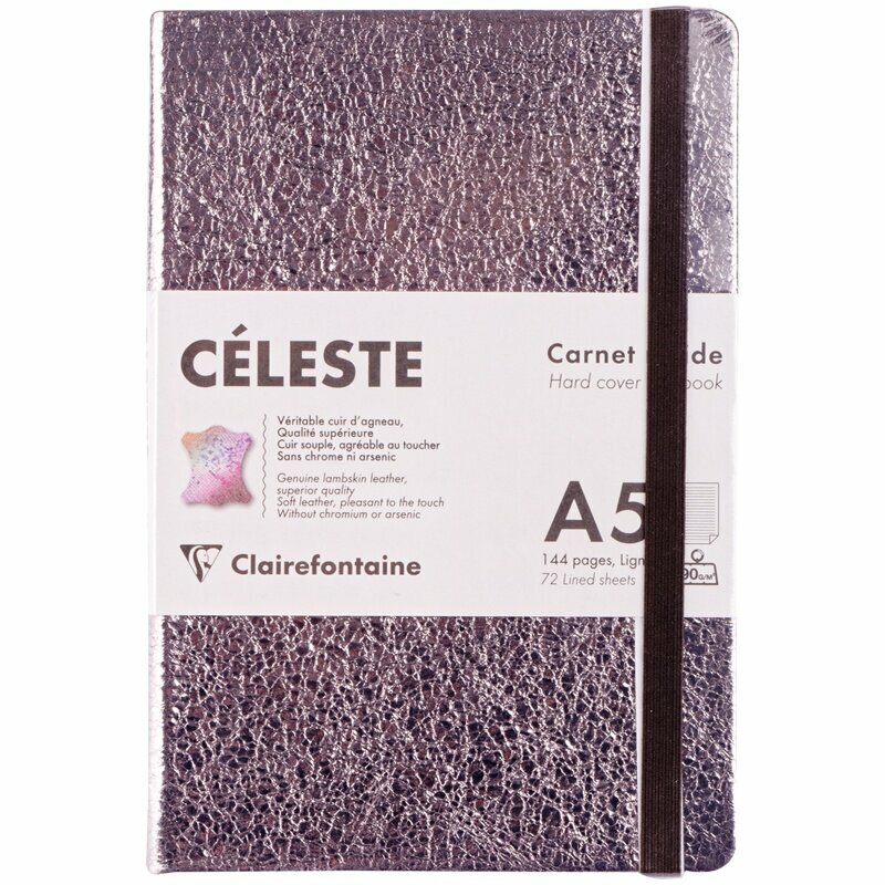 Записная книжка А5 72л. кожа, Clairefontaine "Celestial leather. Lazer Alba", 90г/м2, резинка, ляссе информация: