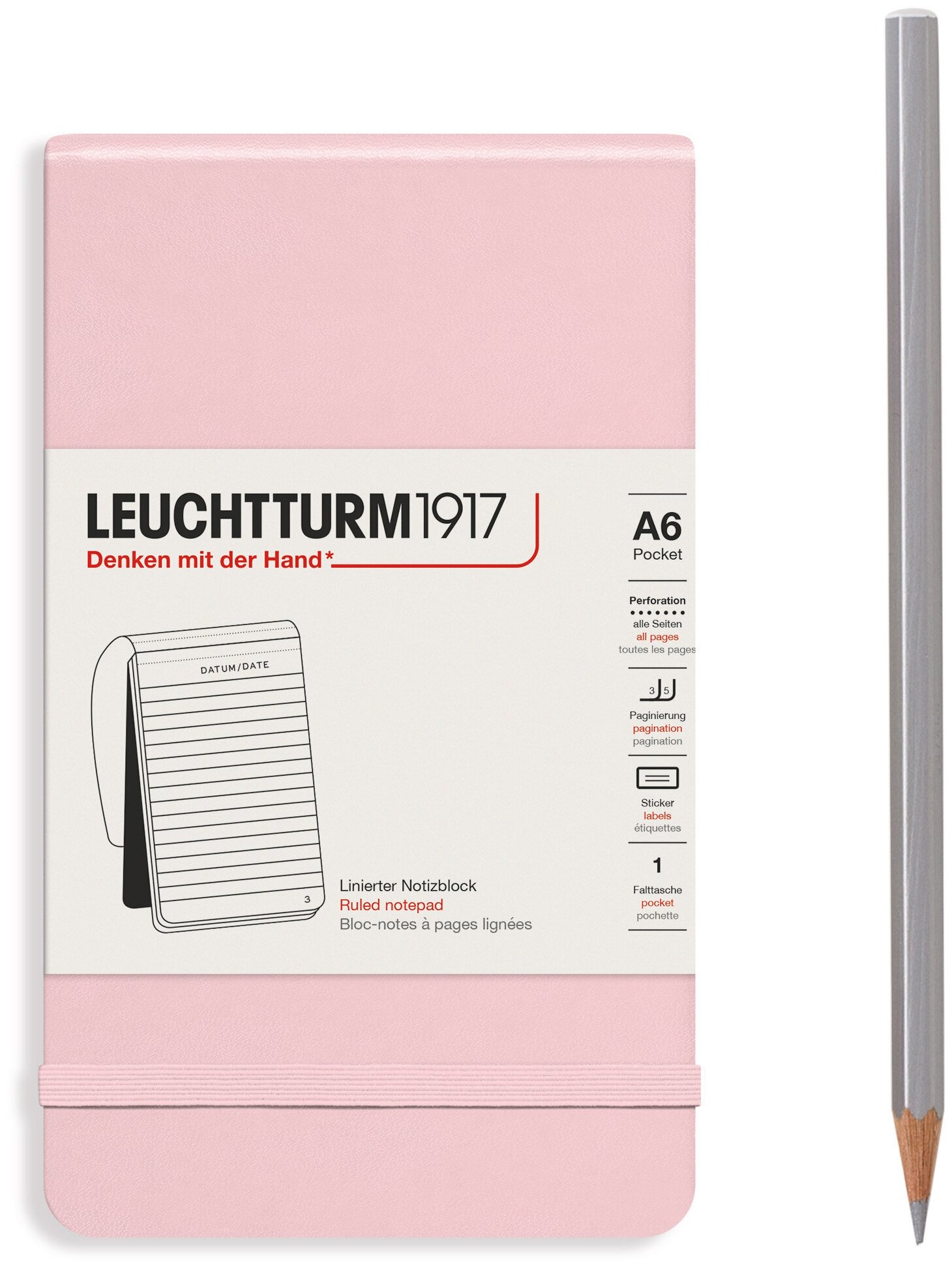 Блокнот Leuchtturm Reporter A6 94л в линейку твердая обложка Розовый информация: