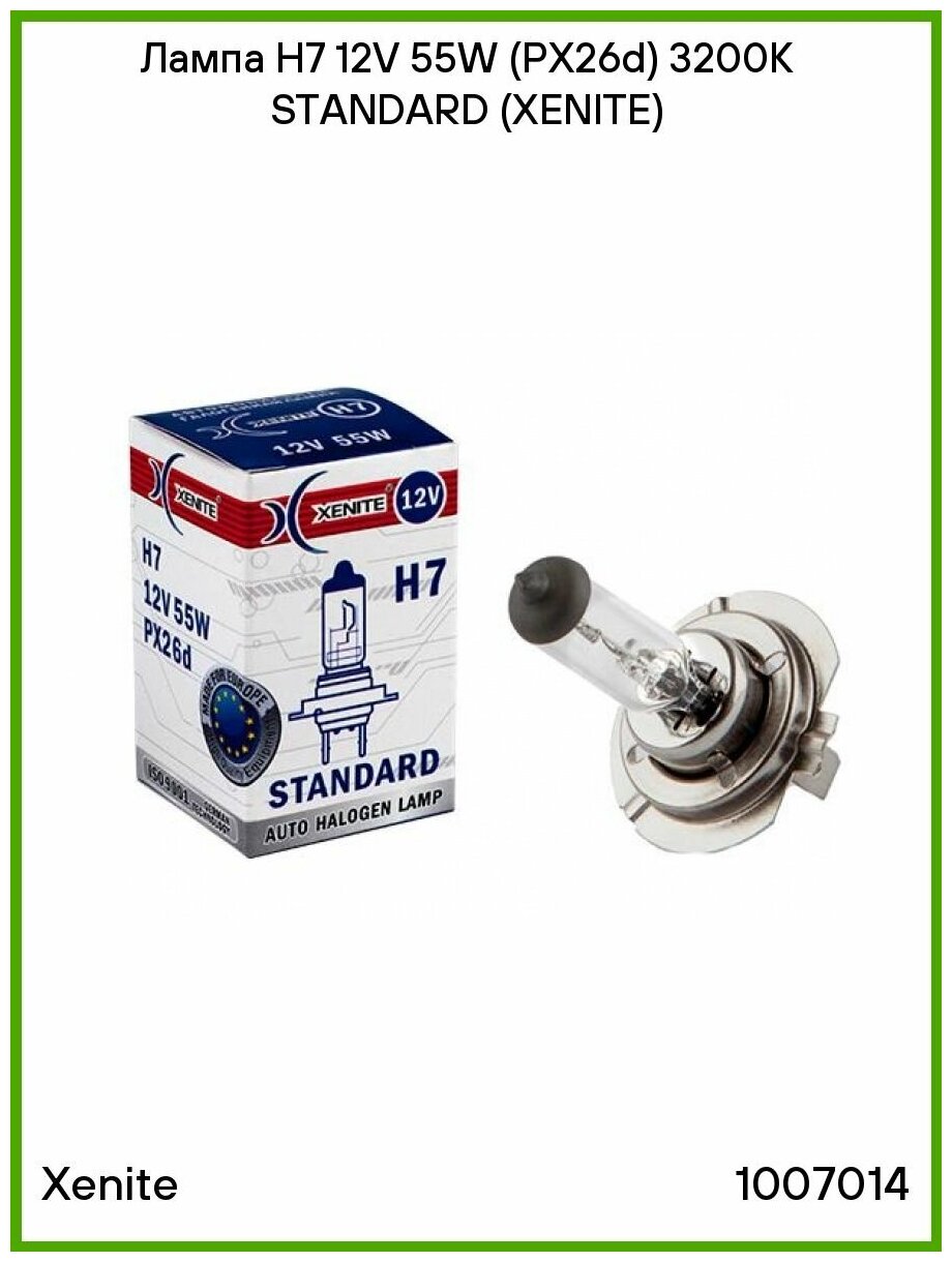 Лампа автомобильная галогенная XENITE H7 (PX26d) STANDARD 12V 55W (кварцевое стекло) (упаковка 1 шт.)