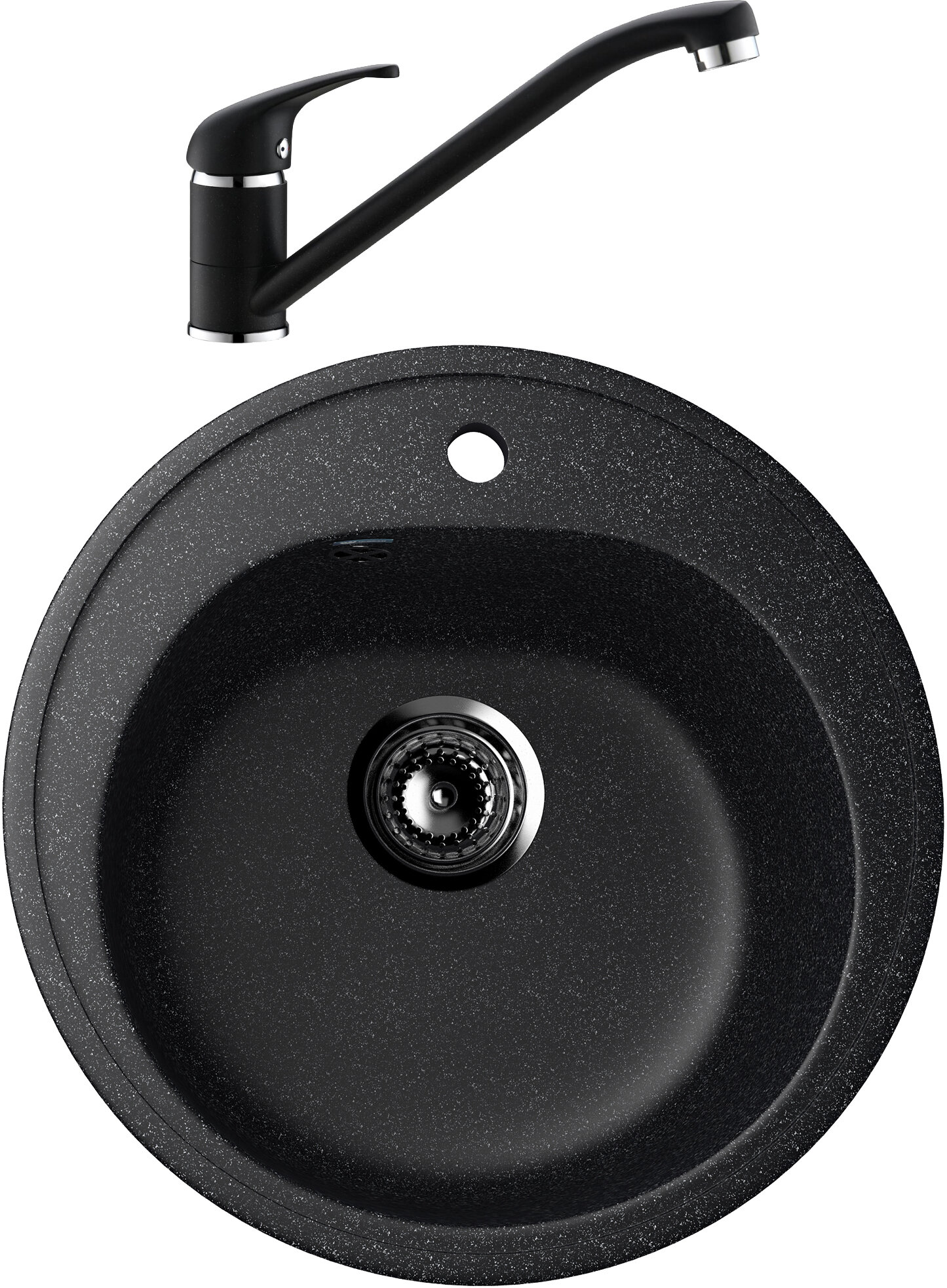 10 цен на Комплект Мойка кухонная Ulgran U-101-308 черная + Смеситель для кухни Domaci Солерно EC-3009 черный