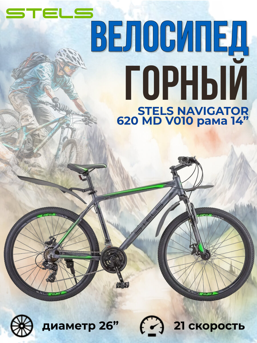 Велосипед Stels Navigator 620 MD V010 Антрацитовый (LU088804), 14' информация:
