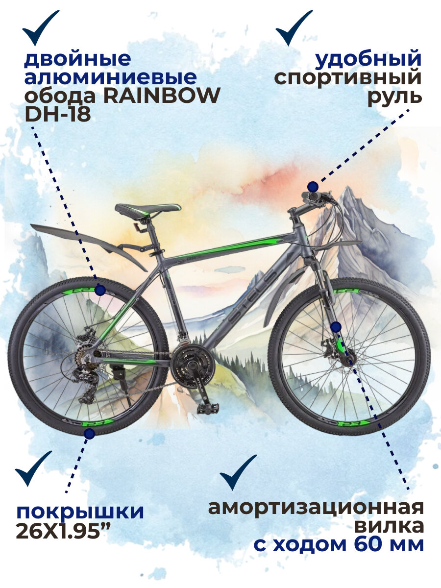 Горный велосипед Stels 26" Navigator 640 D (19" Антрацитовый/зелёный)