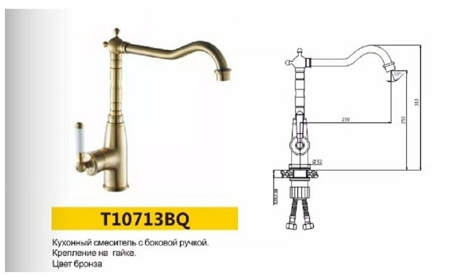 10 цен на Смеситель для кухни OUTE T10713BQ высота 313 мм бронза, излив поворотный радиус поворота 360 градусов.
